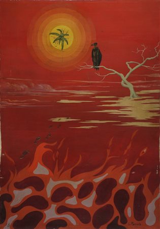 PARZIALE GIANNI (n. 1934) Forse dopo. Olio su tela . Cm 70,00 x 100,00. Firma in basso a destra. Al retro cartiglio descrittivo dell'opera a cura della Galleria d'arte Borgo Pinti (Firenze) realizzato in occasione della III Edizione della mostra internazionale Cavalletto d'oro.