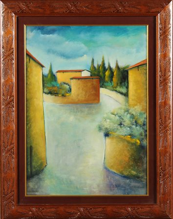 GAGLIARDI GIUSEPPE (n. 1896) Senza titolo. Olio su cartone. Cm 70,00 x 50,00. Firma in basso a destra e al retro. Autentica dell'artista su fotografia. Cornice presente