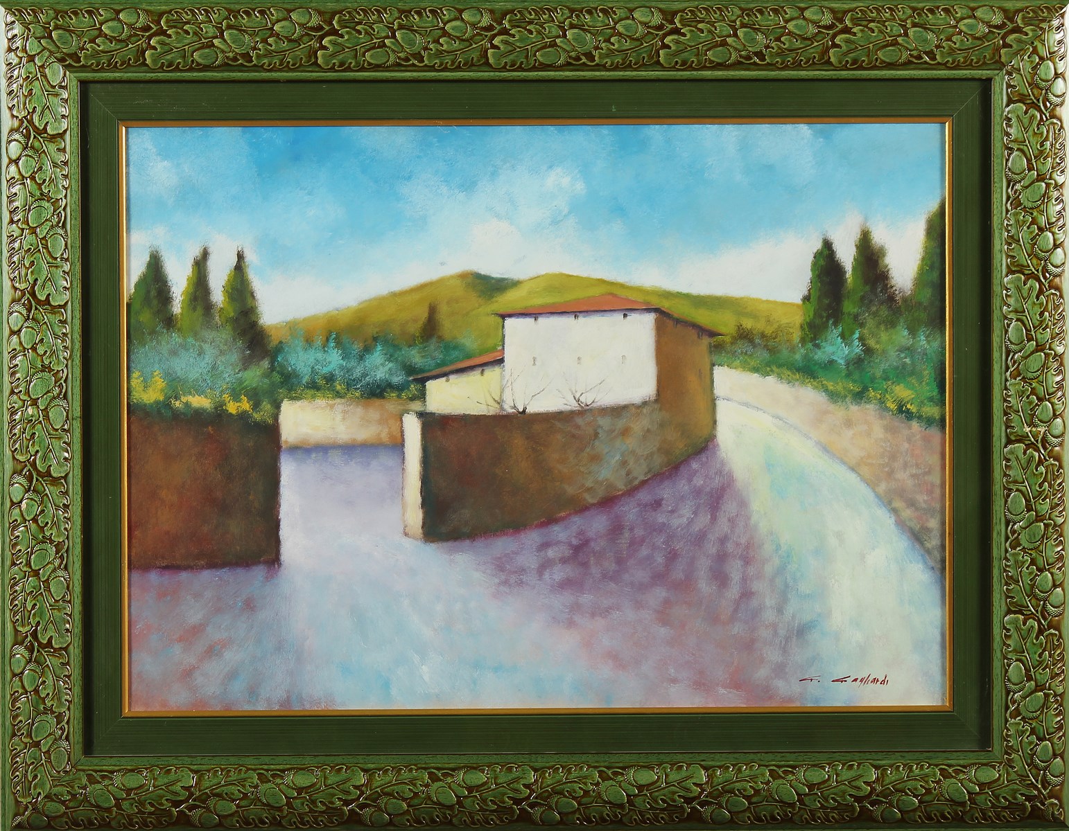 GAGLIARDI GIUSEPPE (n. 1896) Senza titolo. Olio su cartone. Cm 70,00 x 50,00. Firma in basso a destra e al retro. Autentica dell'artista su fotografia. Cornice presente