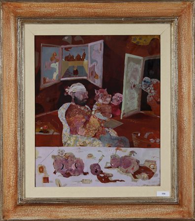 POSSENTI ANTONIO (n. 1933) Stanza di Franceschino. 1967. Olio su tavola. Cm 50,00 x 60,00. Firma e titolo in basso. Al retro timbro della Galleria Santacroce, Firenze. Autentica dell'artista su fotografia. Cornice presente