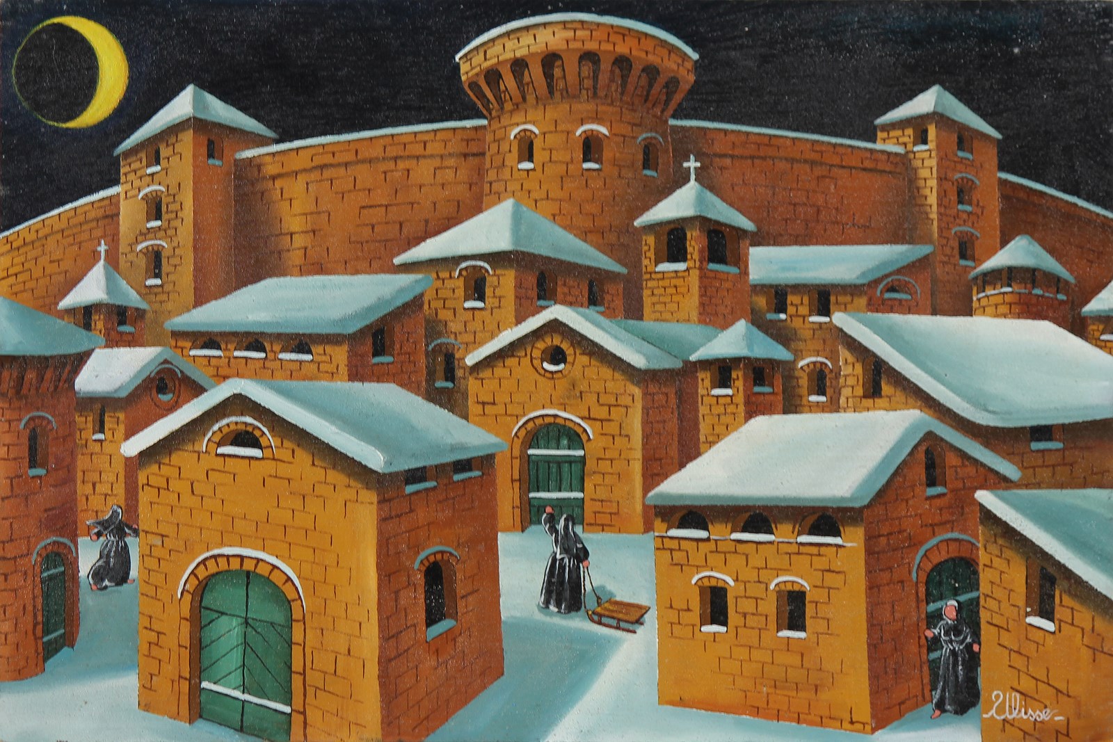 ULISSE (n. 1957) Bagno di notte. 2002. Olio su tavola. Cm 60,00 x 40,00 x...