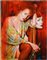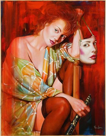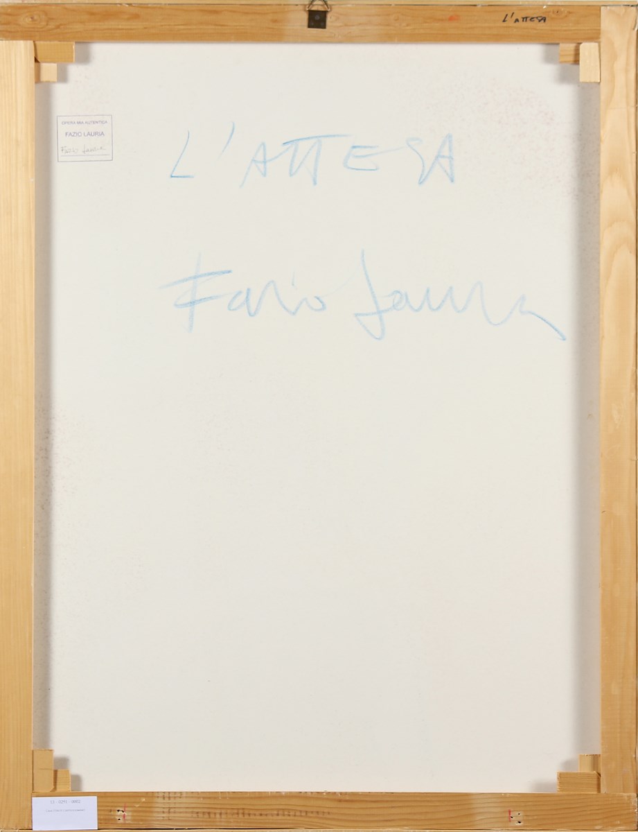 LAURIA FAZIO (n. 1950) L'attesa. Olio su tela . Cm 90,00 x 70,00. Firma in basso a destra. Al retro titolo, firma e timbro per autenticità firmato dall'artista. Cornice presente