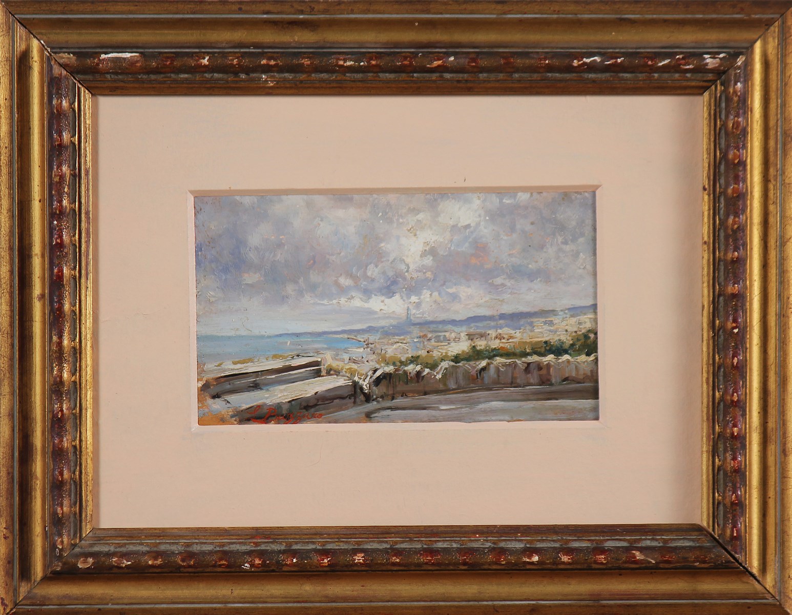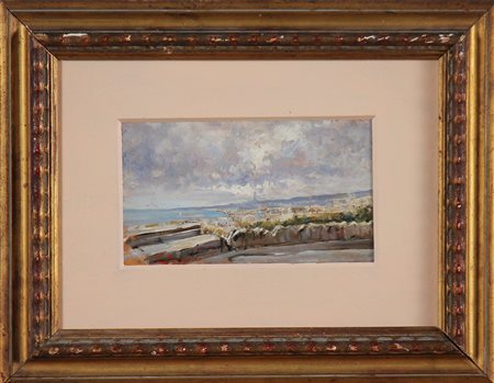 BAZZARO LEONARDO (1853 - 1937) Terrazza panoramica sulla costa. Olio su tavola. Cm 19,00 x 11,50. Firma in basso a sinistra. Cornice presente