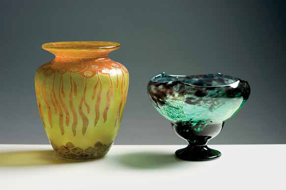 Le Verre Français. Vaso ovoidale in vetro a decori vegetali stilizzati...