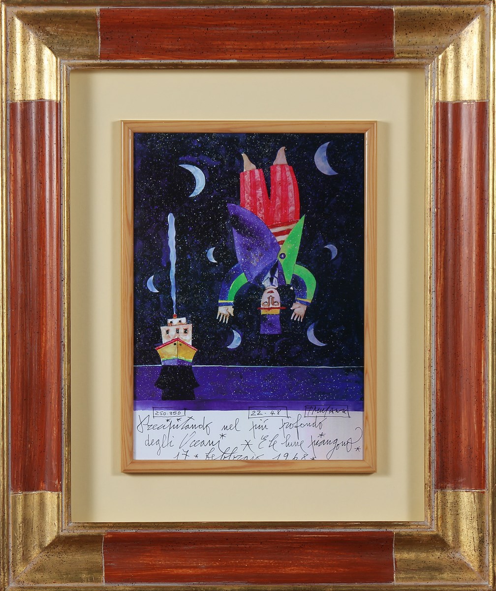 MUSANTE FRANCESCO (n. 1950) Senza titolo. Tecnica mista su tavola. Cm 25,00 x 35,00. Firma in basso a destra. Opera archiviata presso l'archivio Francesco Musante come da documentazione fotografica allegata riportante il relativo numero di repertorio. Cornice presente
