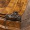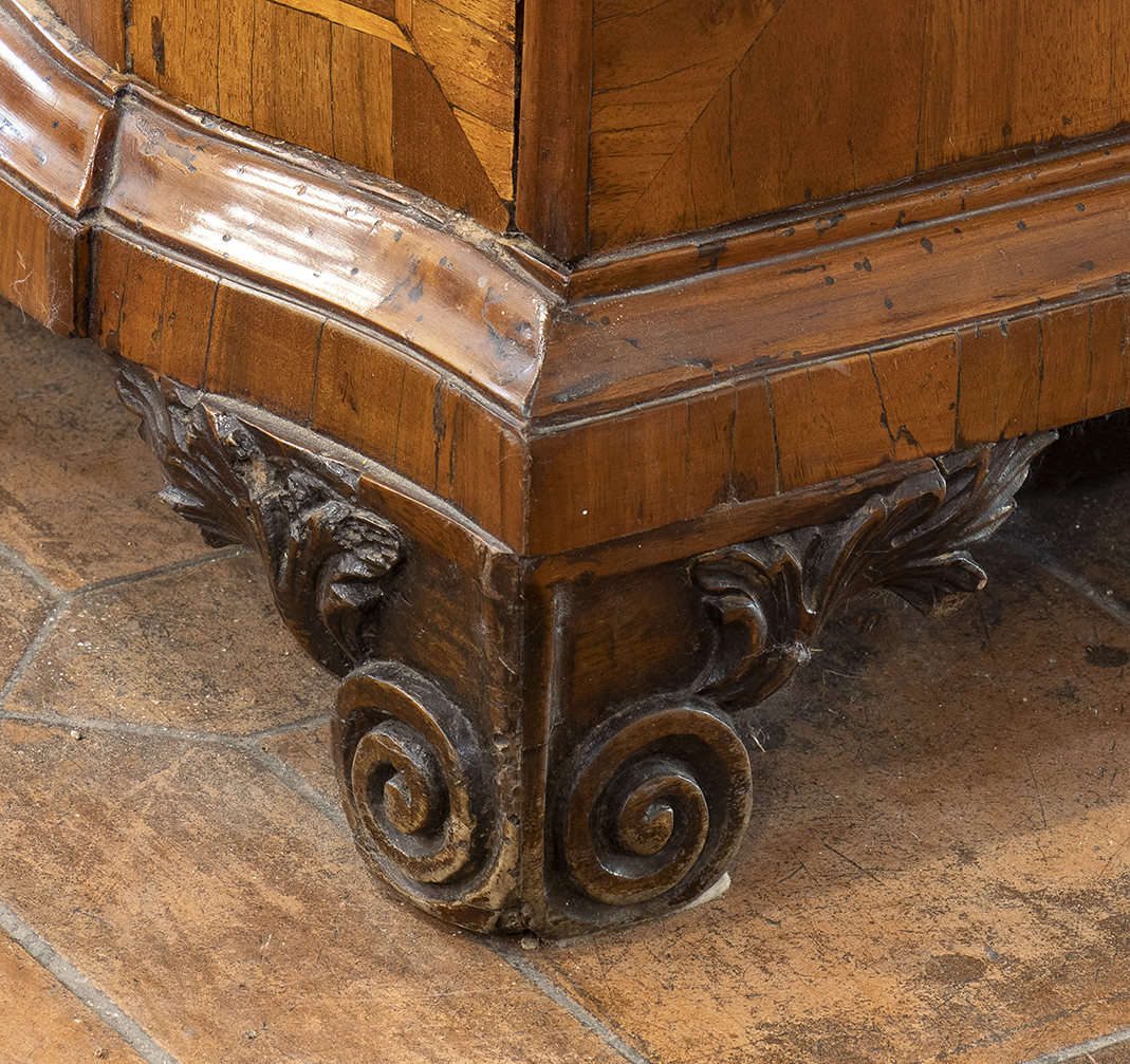 a doppio corpo in noce e radica, fronte a serpentina con fianchi concavi.