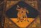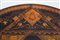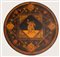 in legni esotici pregiati, il piano, suddiviso in tre quadrati con gli spigoli arricchiti da volti di personaggi mitologici, è interamente intarsiato a micromosaico e reca motivi a grottesche con al centro una grande scena raffigurante danzatori di tarantella.