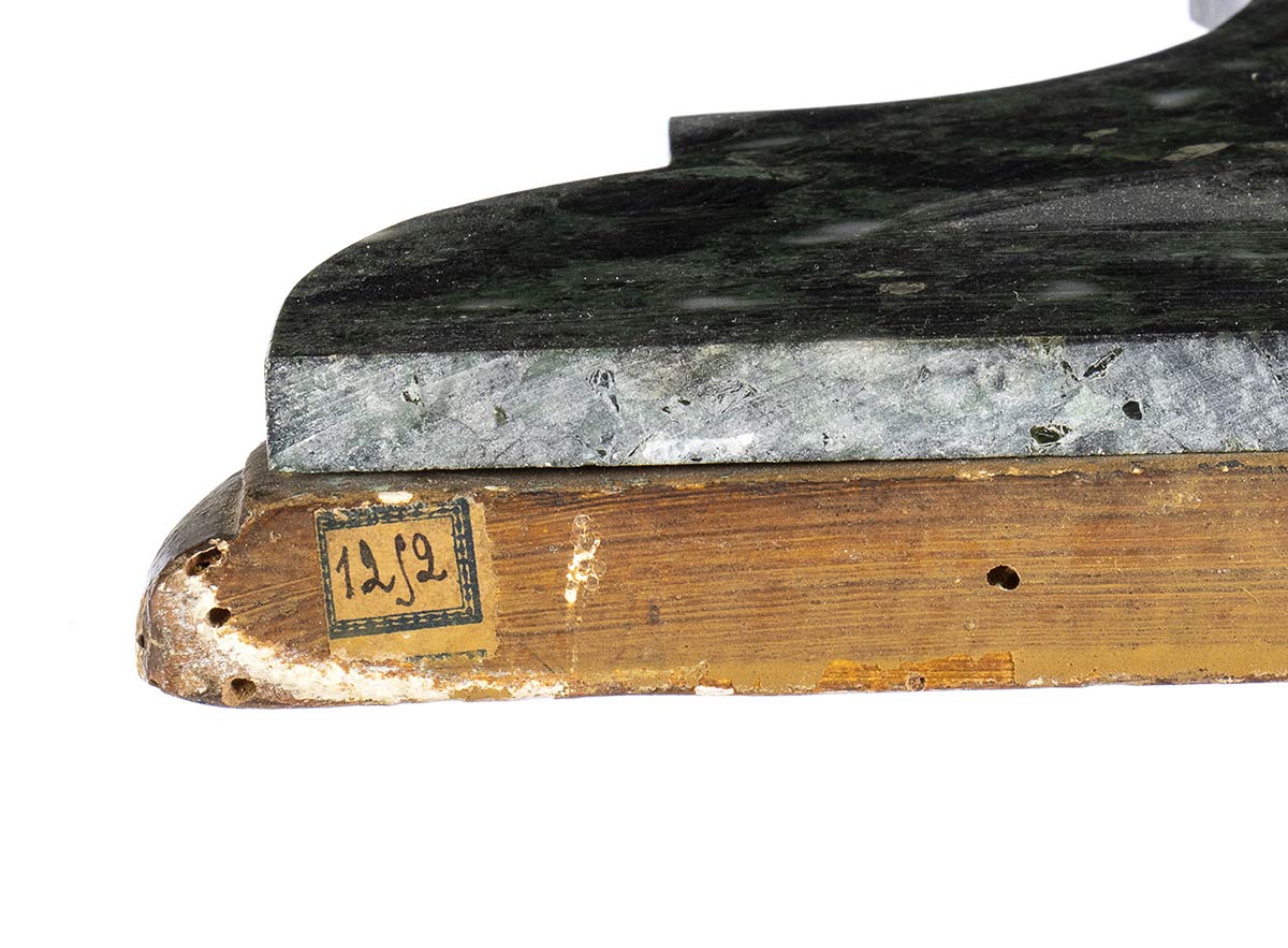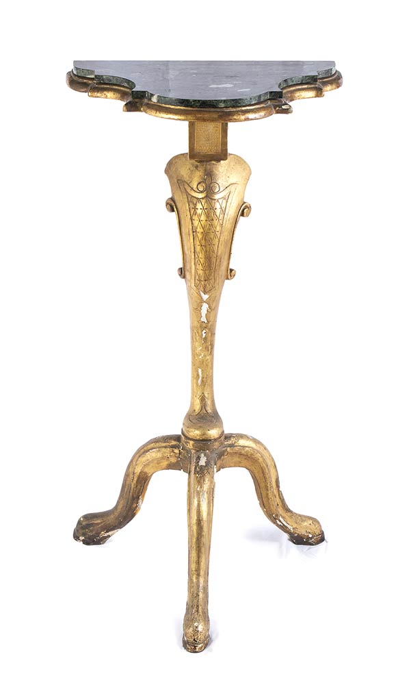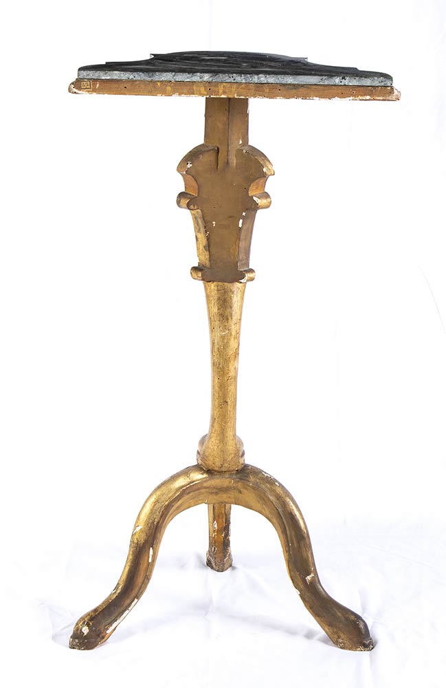 laccata in oro con piano in marmo verde. Dimensioni 88 x 50 x 40 cm. Stato di conservazione: *** discreto
