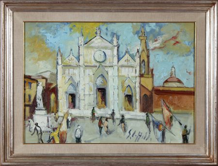 CAPPELLO EMANUELE (n. 1936) Piazza Signoria, Firenze. Olio su tela . Cm 70,00 x 50,00. Firma in basso. Cornice presente