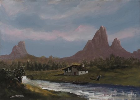 GHILARDI ALBERTO (GILART) (n. 1925) Senza titolo. Olio su tela . Cm 70,00 x 50,00. Firma in basso a sinistra. Al retro cartiglio descrittivo relativo all'artista.