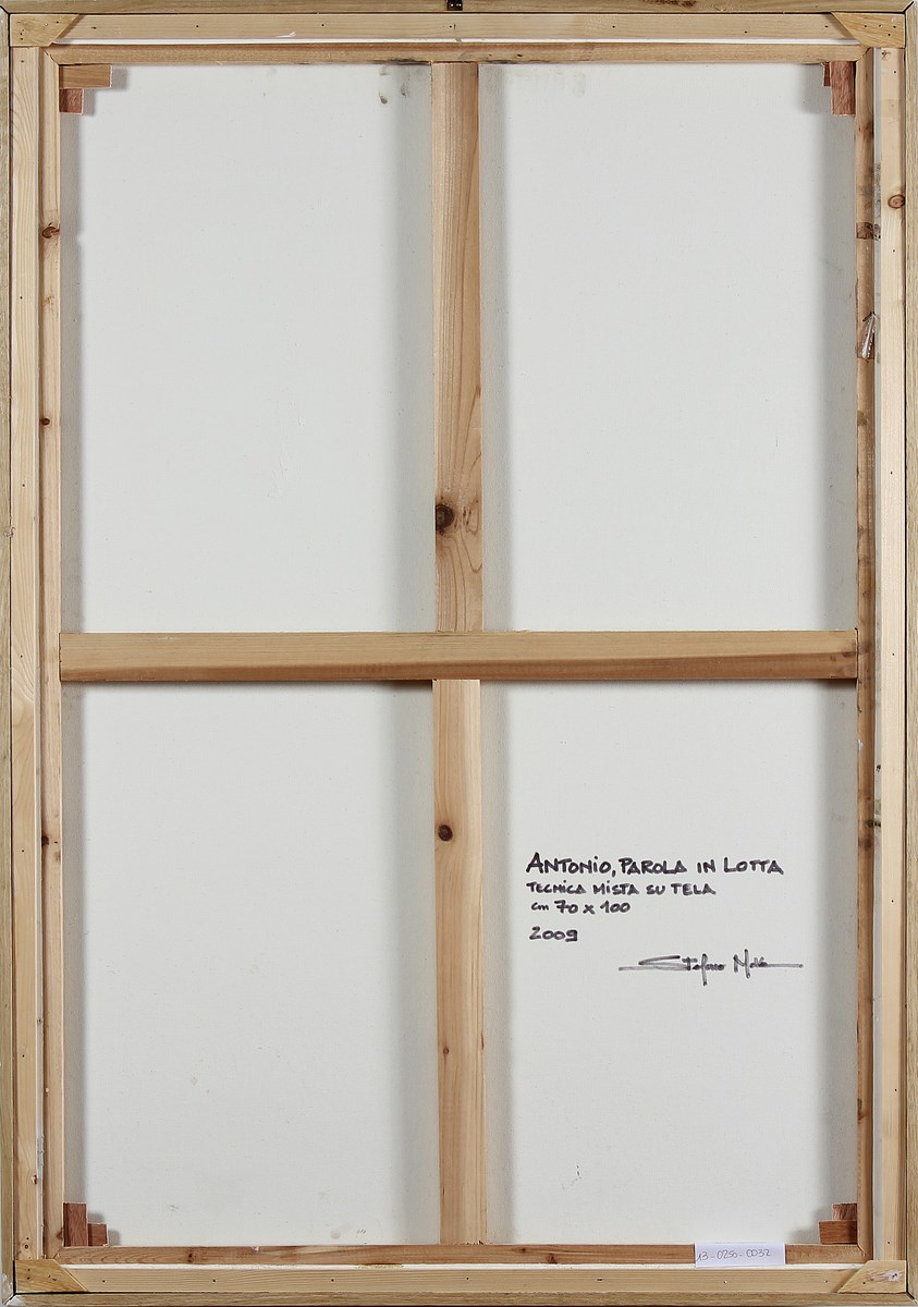 NAVA STEFANO (n. 1977) Antonio, parole in lotta. 2009. Tecnica mista su tela. Cm 70,00 x 100,00. Al retro firma, titolo e data.