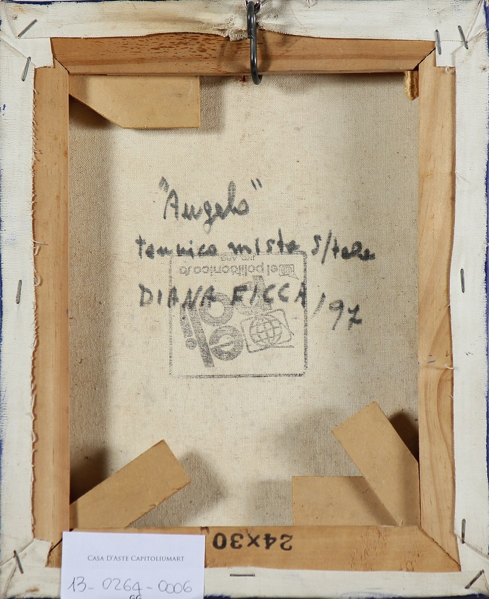 ANONIMO Angelo. 1997. Olio su tela . Cm 24,00 x 30,00. Tela leggermente consumata agli angoli. Firmato Diana Ficca in basso a destra. Al retro titolo, firma e data.