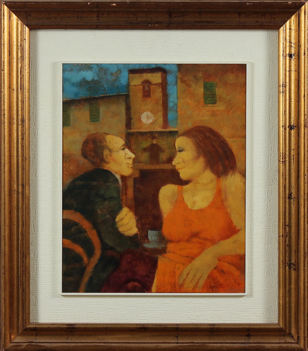 SQUILLANTINI REMO (1920 - 1996) Caffè a Stia. Olio su tavola. Cm 40,00 x 50,00. Firma in basso a destra e al retro. Opera archiviata presso l'Archivio Generale delle opere di Remo Squillantini come da documentazione fotografica allegata riportante il relativo numero d'inventario. Opera pubblicata sul volume, allegato all'opera - Squillantini, La fatica di essere, il mestiere di apparire - a cura di Giovanni Faccenda, Edizioni Museo delle Fate, Pag. 29. . Cornice presente