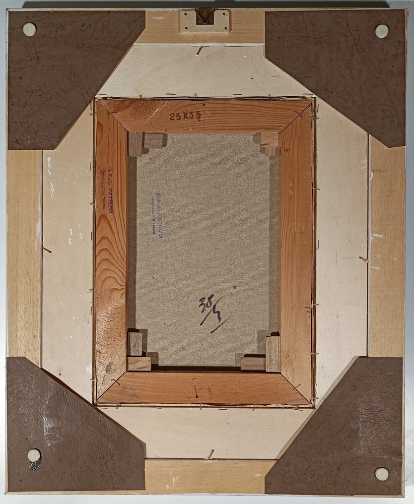 Acrilico su tela 35x25 cm; firma in basso a destra; timbro della Galleria Patrizia (Montecatini Terme) al retro.