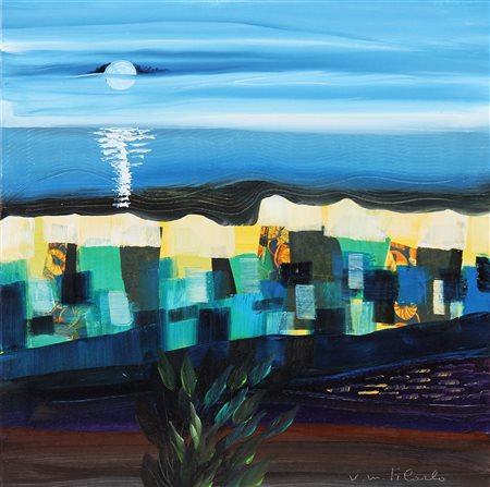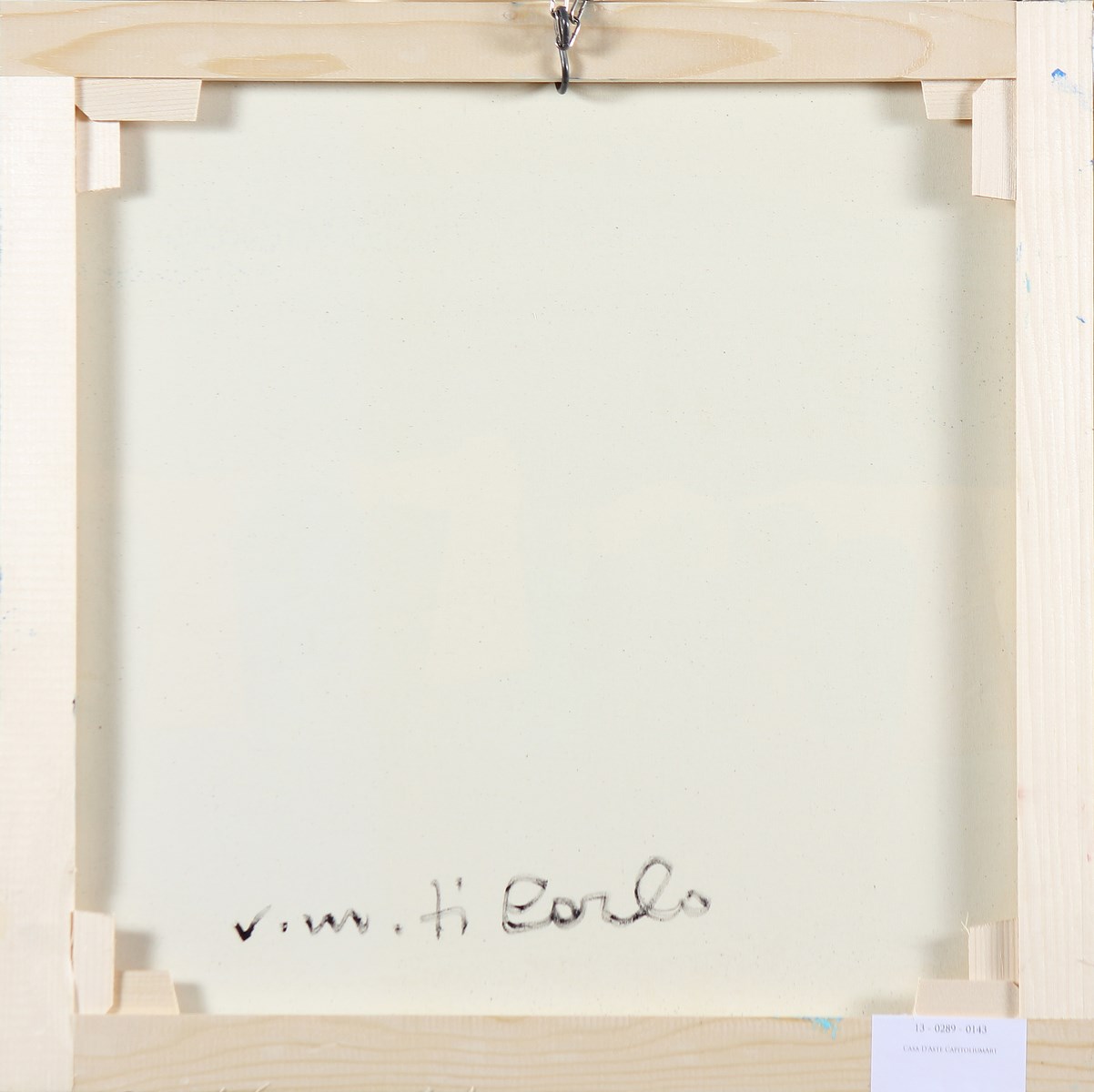 DI CARLO VITTORIO MARIA (n. 1937) Senza titolo. Tecnica mista su tela. Cm 50,00 x 50,00 x 2,00. Firma in basso. Al retro firma. Autentica dell'artista su fotografia.