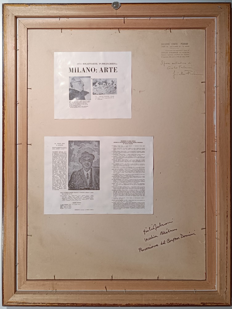 Acquarello su cartoncino 50x70 cm; firma in basso a destra; firma, titolo, anno e timbro della Galleria Pedrani al retro.