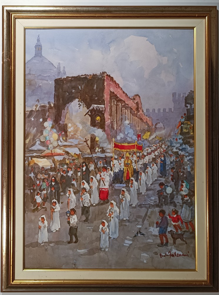 Giulio Falzoni - Vecchia Milano - La processione del Corpus Domini, 1960