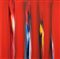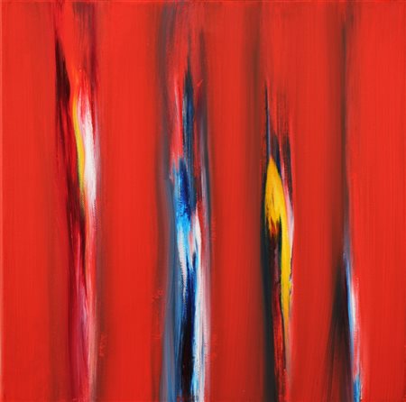 FINZI ENNIO (n. 1931) Il verso del colore in rosso. 2010. Olio su tela . Cm 40,00 x 40,00 x 2,00. Al retro titolo, firma e data. Autentica dell'artista su fotografia.