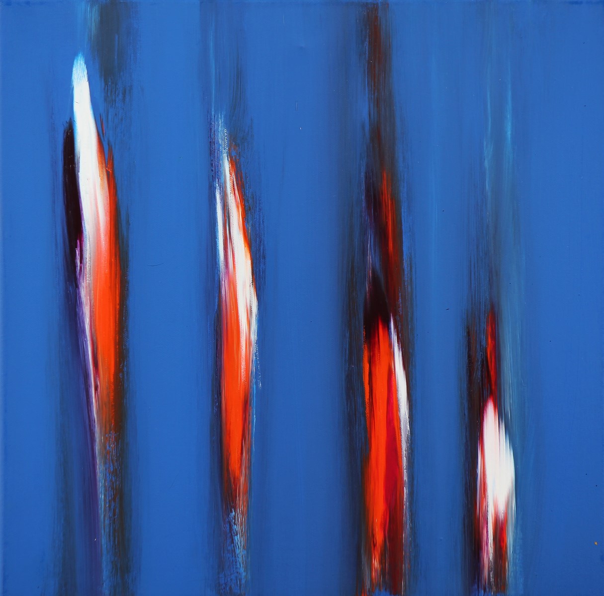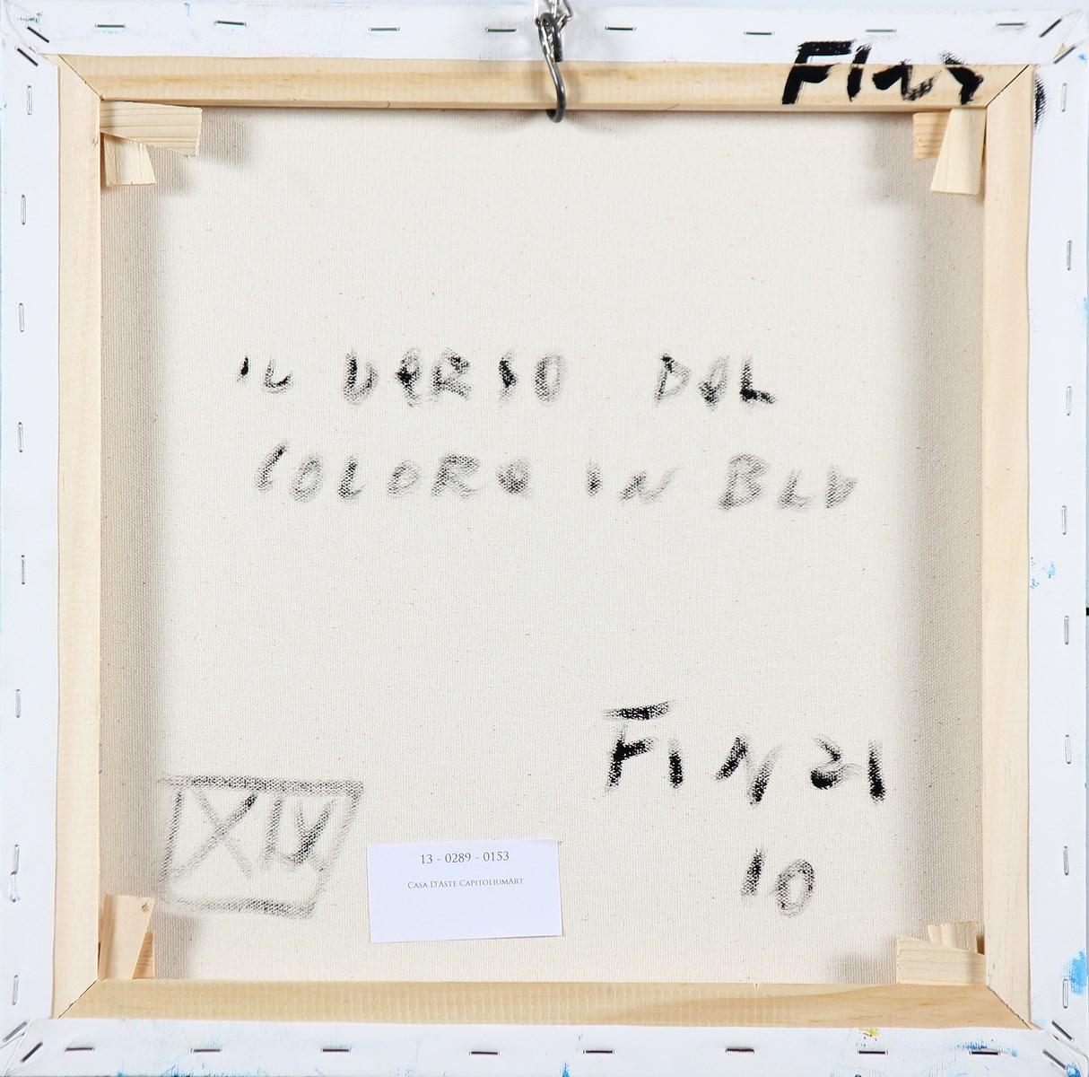 FINZI ENNIO (n. 1931) Il verso del colore in blu. 2010. Olio su tela . Cm 40,00 x 40,00 x 2,00. Al retro titolo, firma e data. Autentica dell'artista su fotografia.