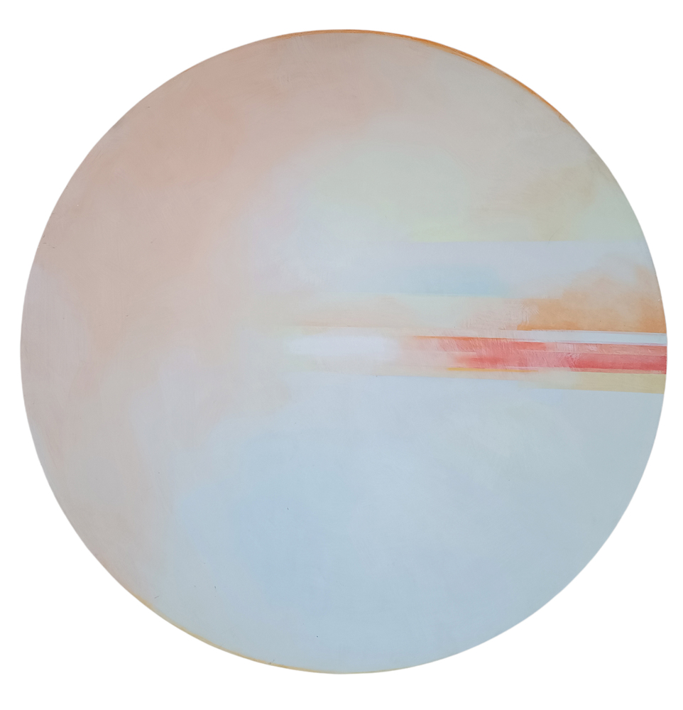 Tenica mista su tavola diametro 120 cm; firma e anno al retro.