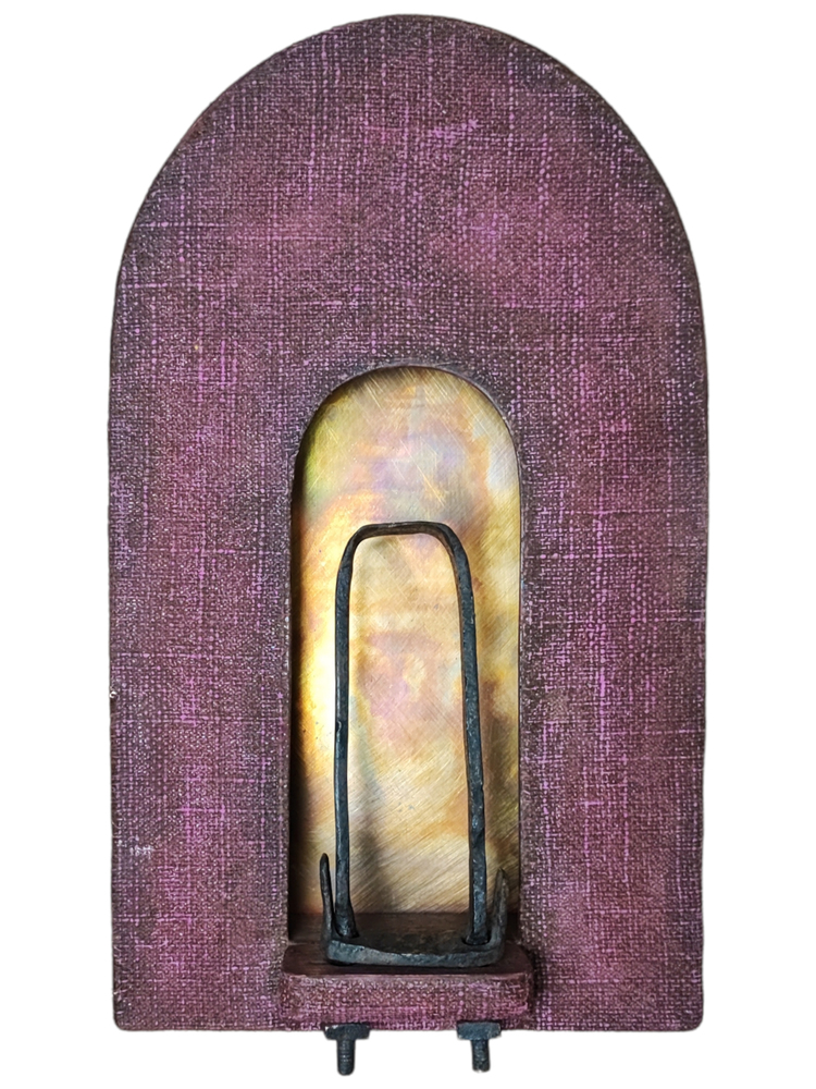 Tecnica mista su legno, ferro e stoffa 60x40x12 cm; firma e titolo sul retro.