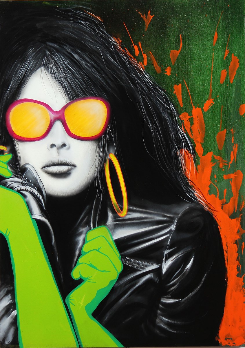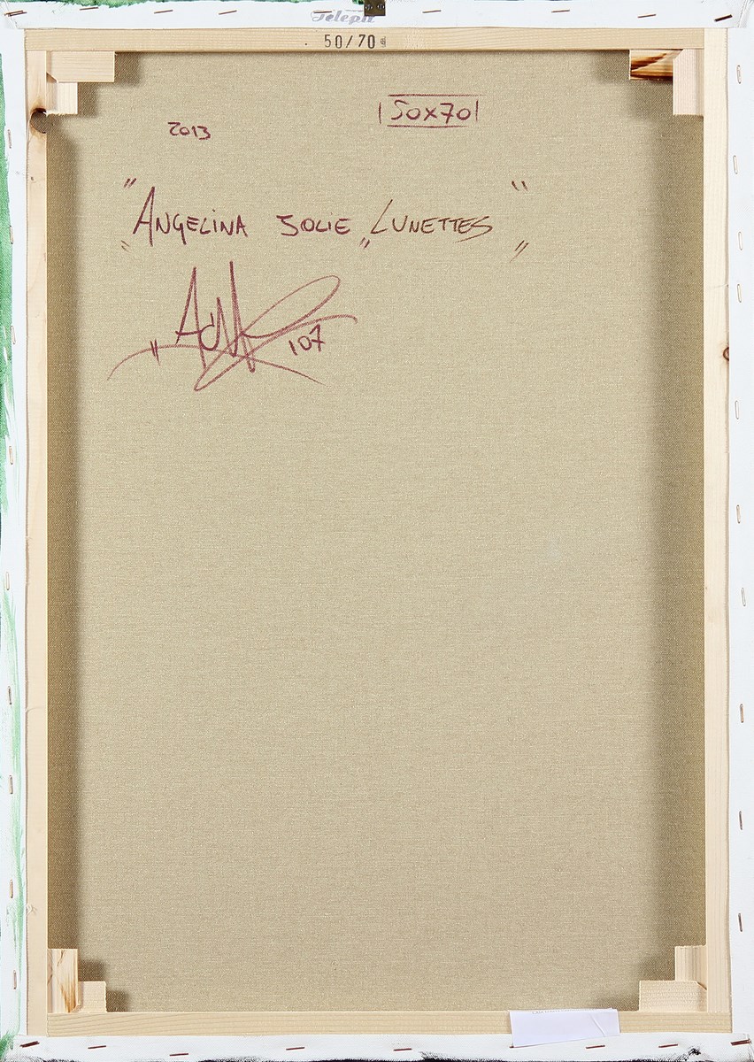 ACME 107 (FABIO COLOMBINI) (n. 1974) Angelina Jolie, Lunettes. 2013. Tecnica mista su tela. Cm 50,00 x 70,00. Al retro firma, titolo e data.