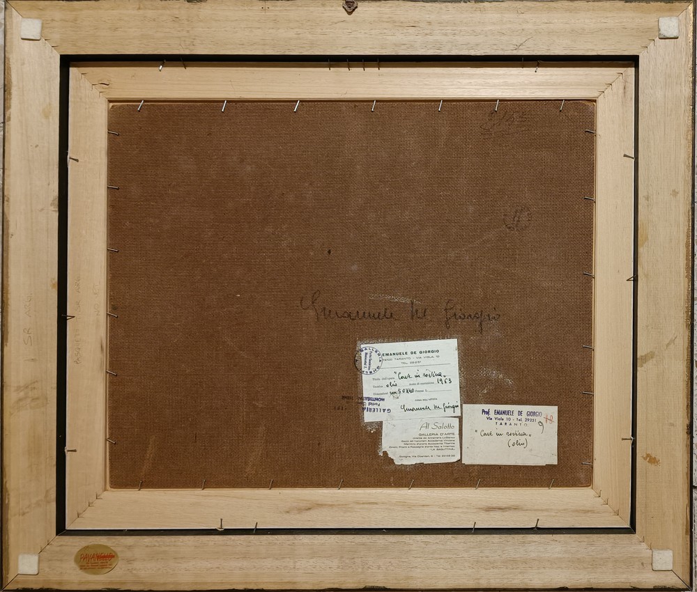 Olio su masonite 40x50 cm; firma in basso a destra; firma, titolo, anno, timbro della Galleria Giorgio Ghelfi, cartiglio della Galleria d'Arte Al Salotto ed autentica dell'artista su cartiglio al retro.