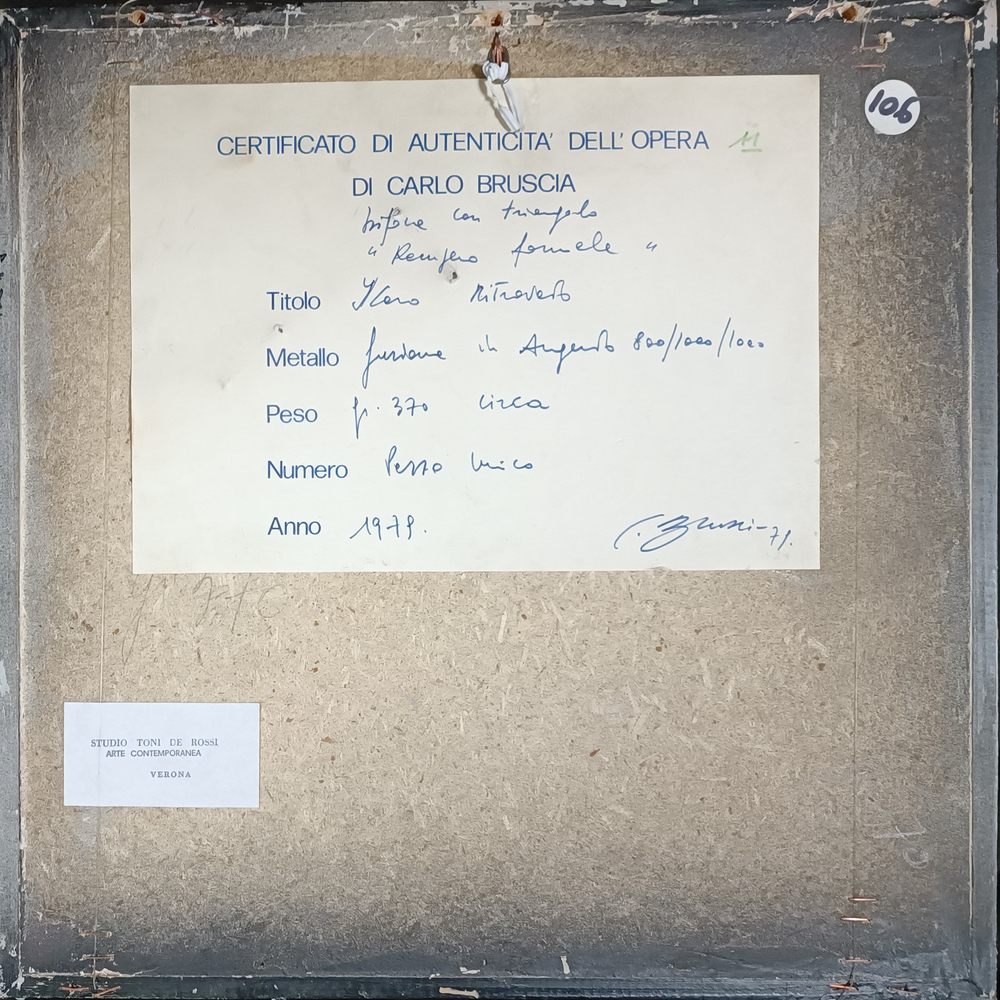 Scultura in argento 20x20 cm; firma, titolo, anno e certificato di autenticità dell’artista al retro.