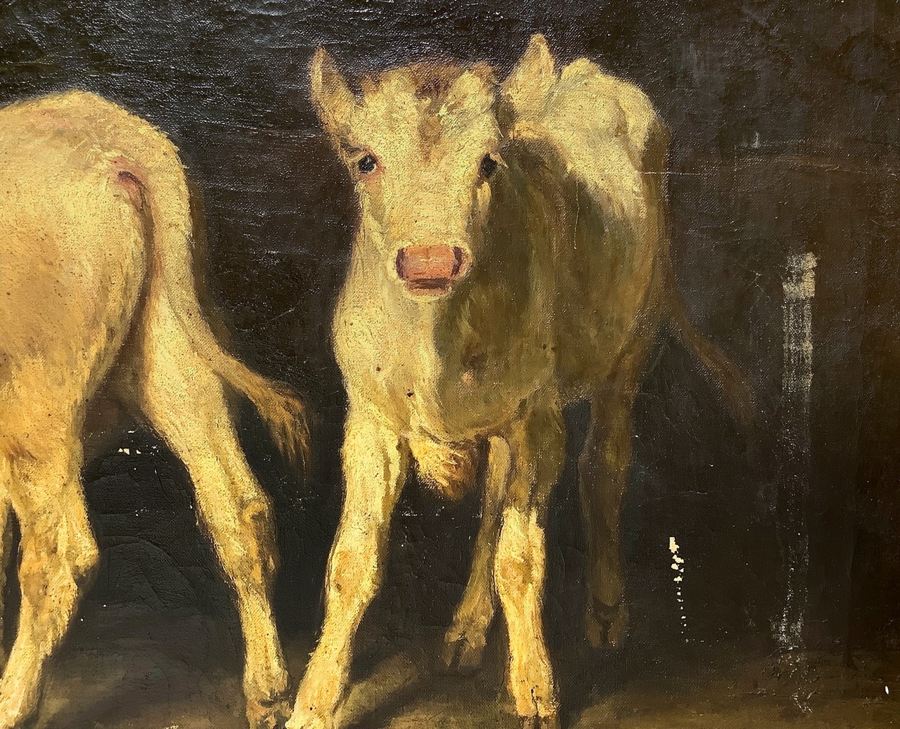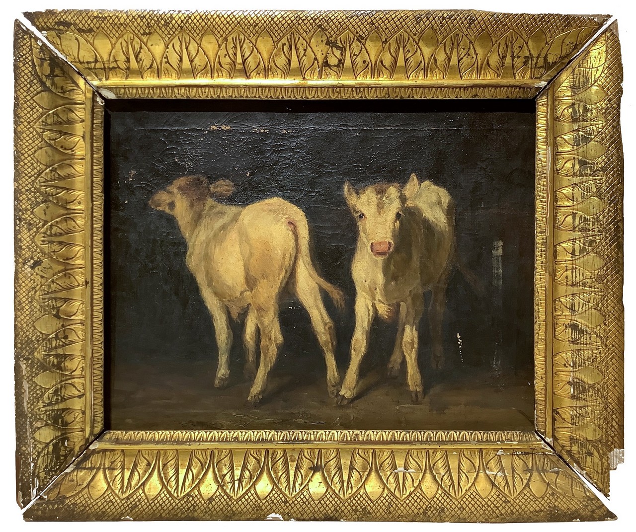 Dipinto raffigurante coppia di mucche 39x42, in cornice 52,5 x64 Olio su tela Pittore Italiano del XIX Secolo