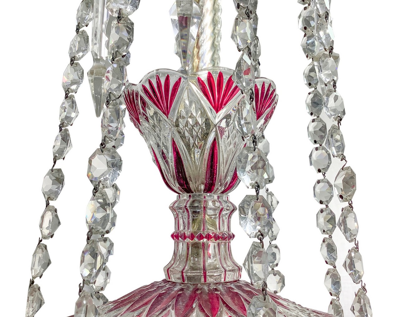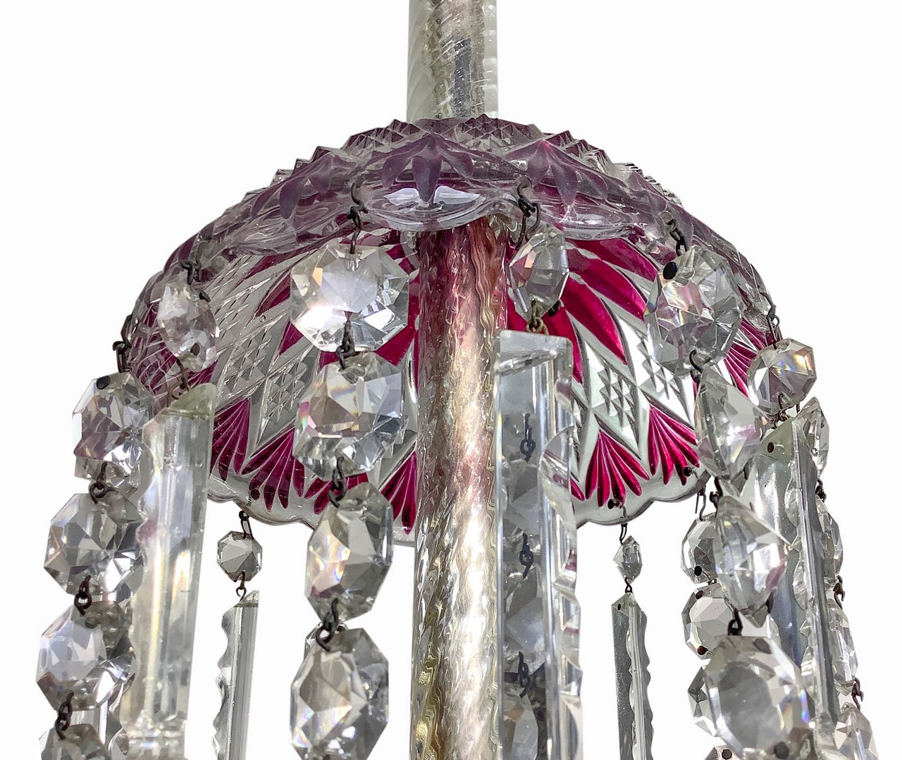 Baccarat - Importante ed elegante lampadario in cristallo trasparente e bordeaux, a 12 luci, 19° Secolo