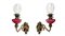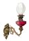 Coppia di appliques a petrolio in bronzo e vetro di color magenta, Fine 19° Secolo