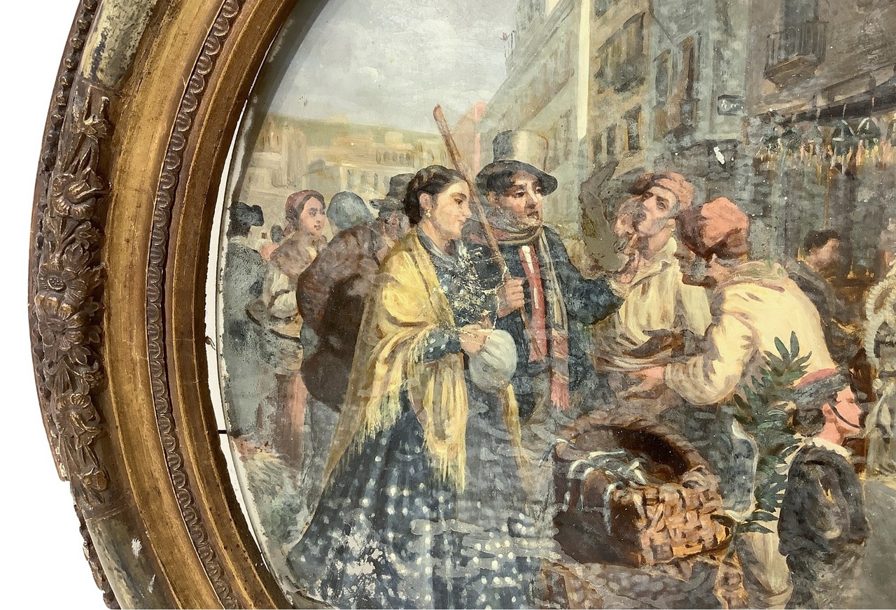 Ovale raffigurante scene di mercato popolare, 19° Secolo