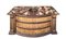 Mobile sacrestia Luigi XIV, laccato e dorato., Fine 17° / 18° Secolo h cm. 110 x 192 x 87 Piano lastronato con commessi di marmi nei toni del rosso. Laccatura policroma su fronte dei cassetti con motivi ornati e richiami di carattere religioso.