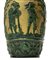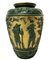 Vaso in maiolica verde e oro con raffigurazione di tralci d'uva e personaggi, 20° Secolo
