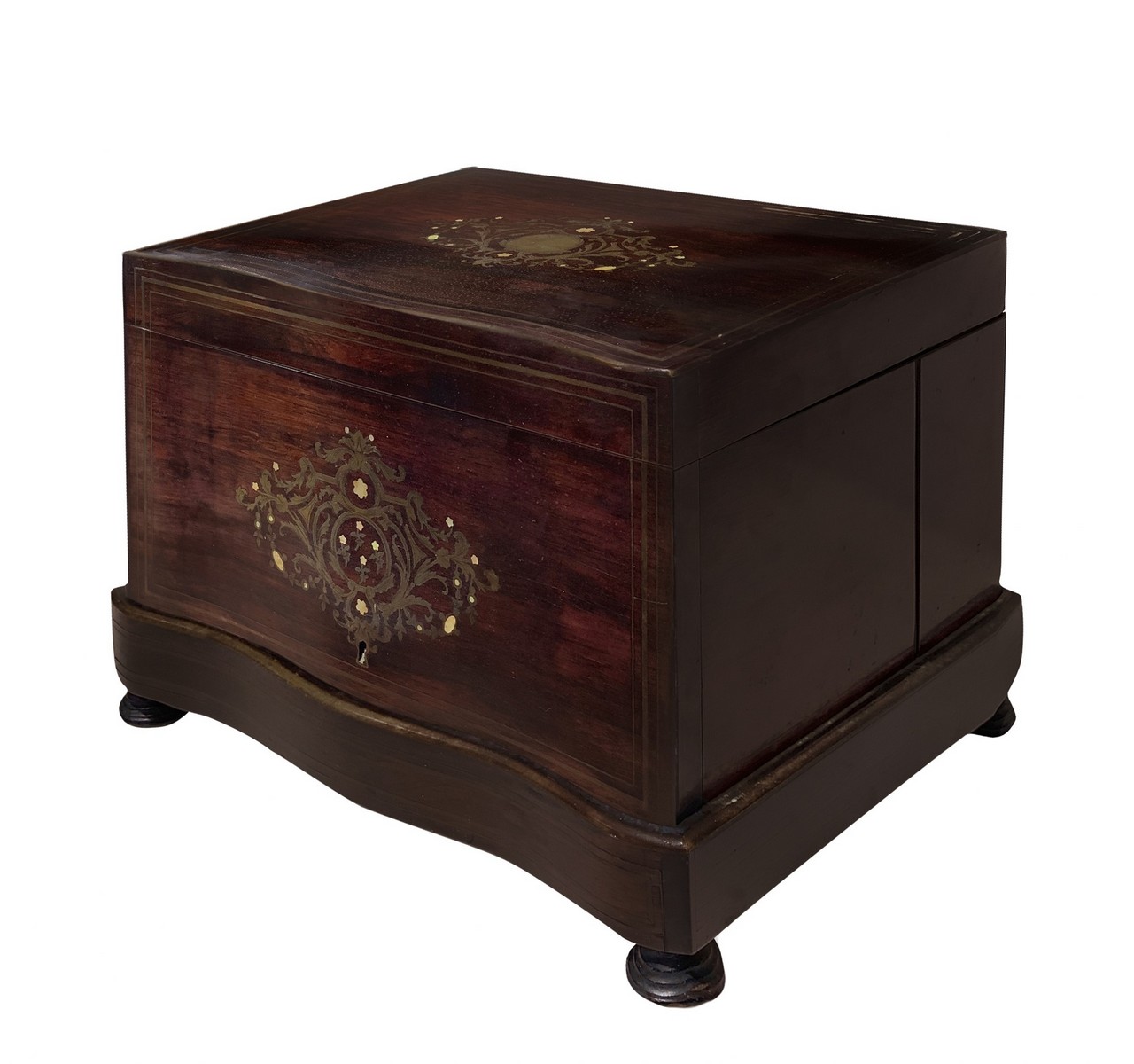 Lot 239 | Completo per rosoli in mobiletto a cassetta in legno con intarsi., Napoleon III, sec. XIX