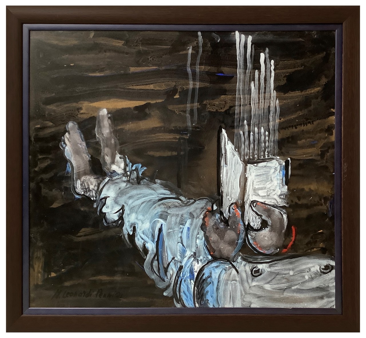 Tra le tecniche adottate dall’artista, oltre ai coloriacrilici sulla masonite, padroneggia la xilografia che richiamano alla memoriala ripresa tardo-ottocentesca di questa tecnica già cara a Durer.