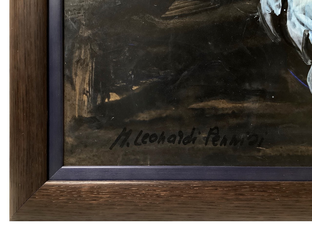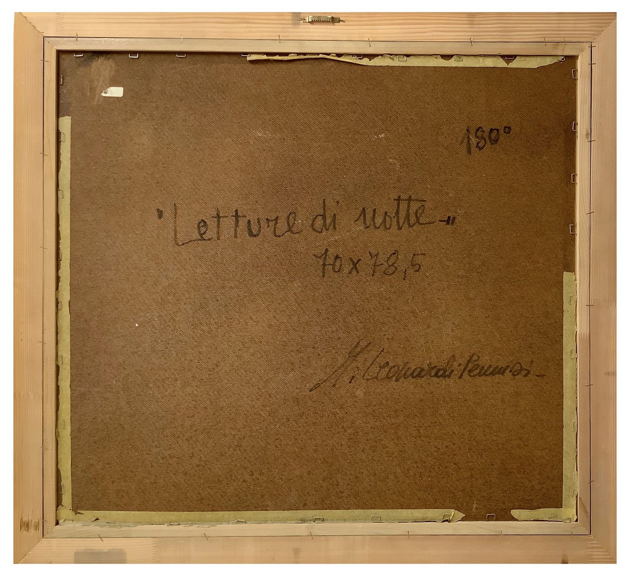 Maria Leonardi Pennisi (Acireale) - Lettura di notte in cornice h cm 82,5x90,5 ; senza h cm 70x78,5 acrilico su masonite