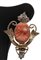 Orecchini in oro 9 carati con corallo inciso e diamanti