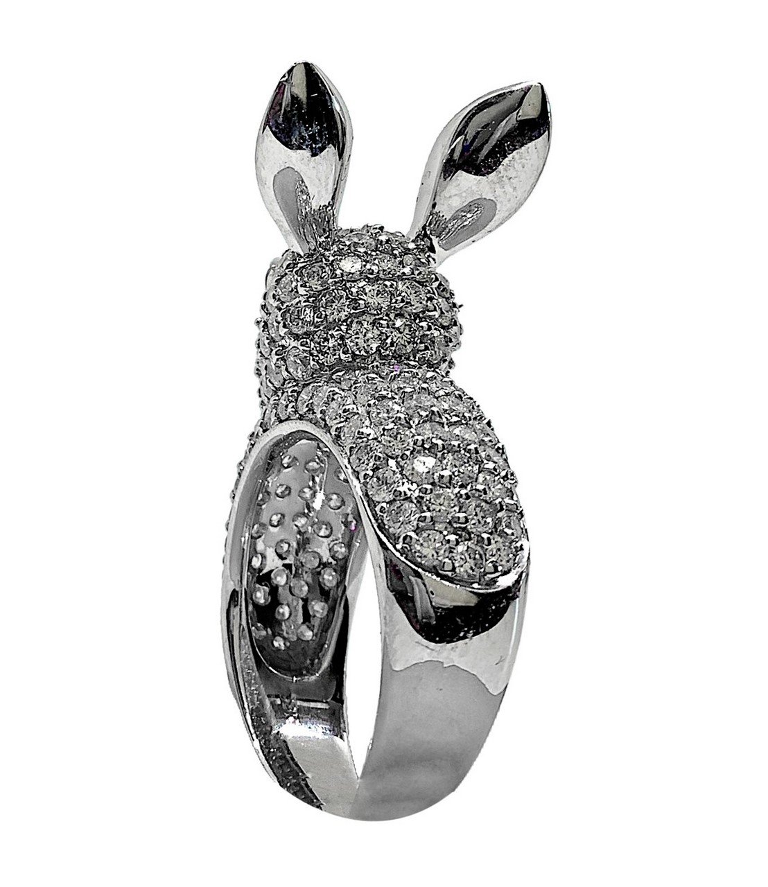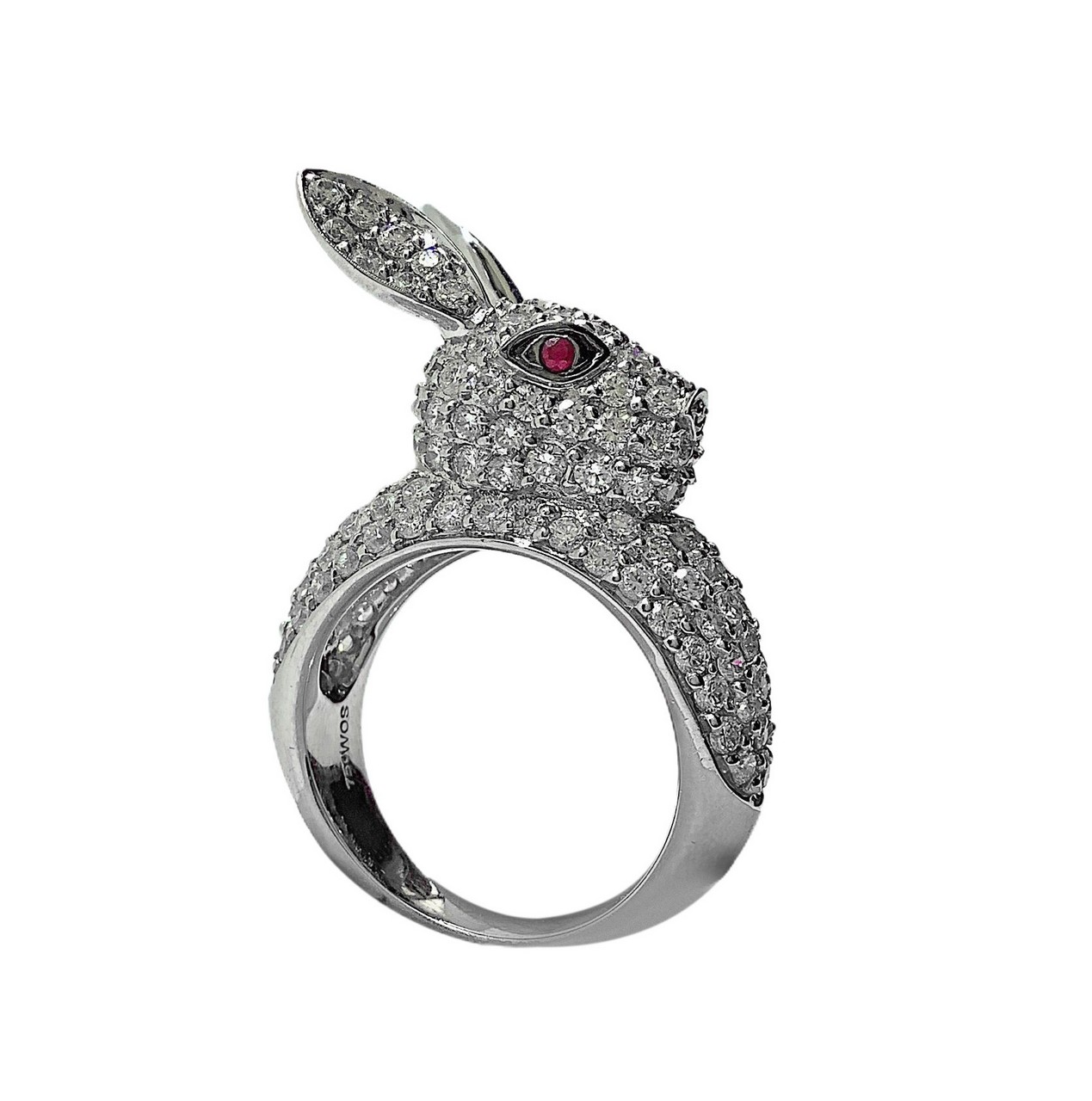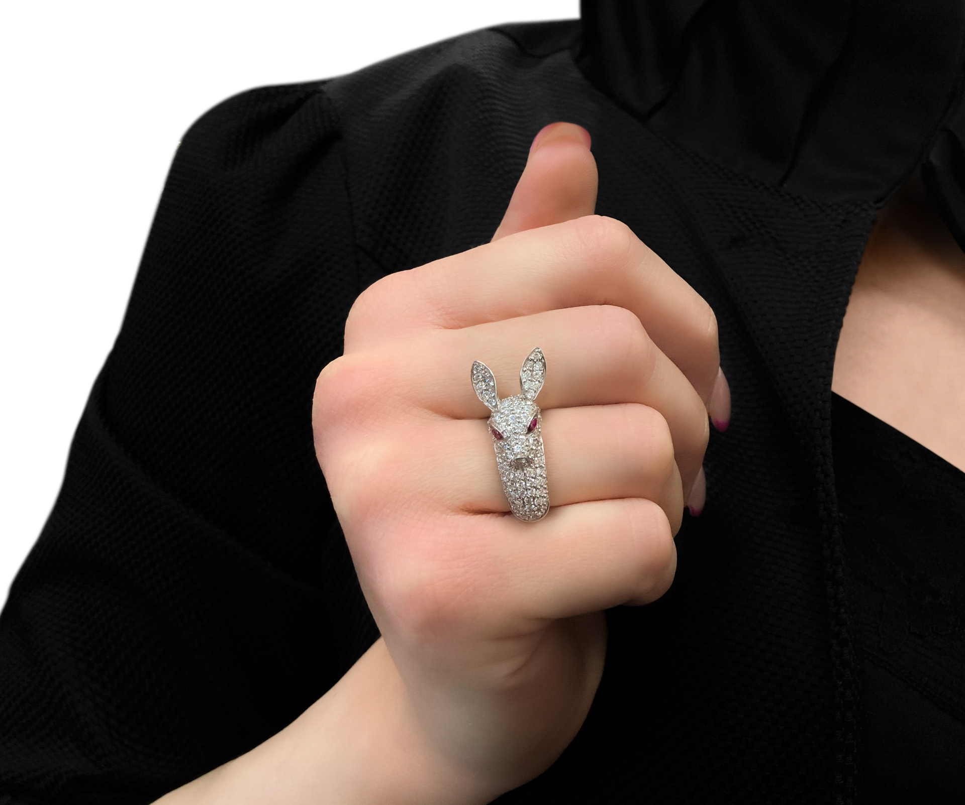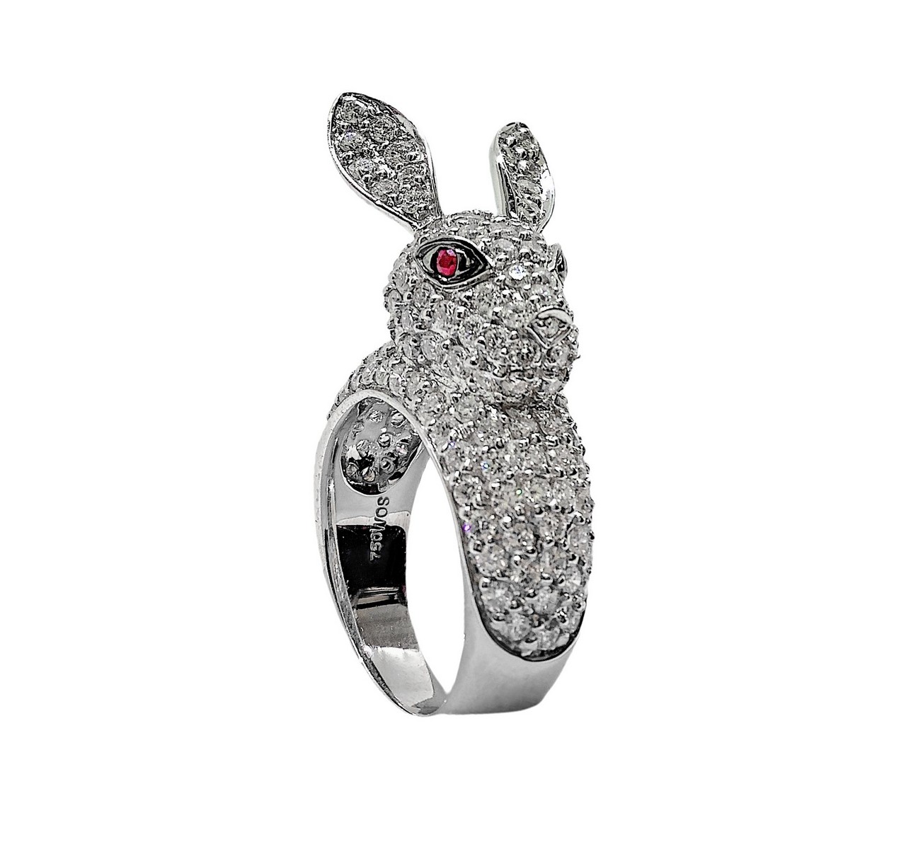 Anello animalier in oro 750, 18 kt con pave' di diamanti naturali non trattati 5.80 ct, colore G e rubini 11,7 gr