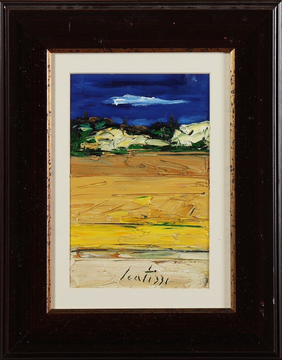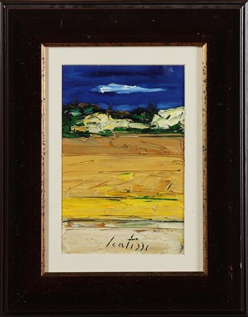SCATIZZI SERGIO (1918 - 2009) Paesaggio. Olio su tavola. Cm 20,00 x 30,00. Firma in basso. Al retro firma. Autentica dell'artista su fotografia. Cornice presente