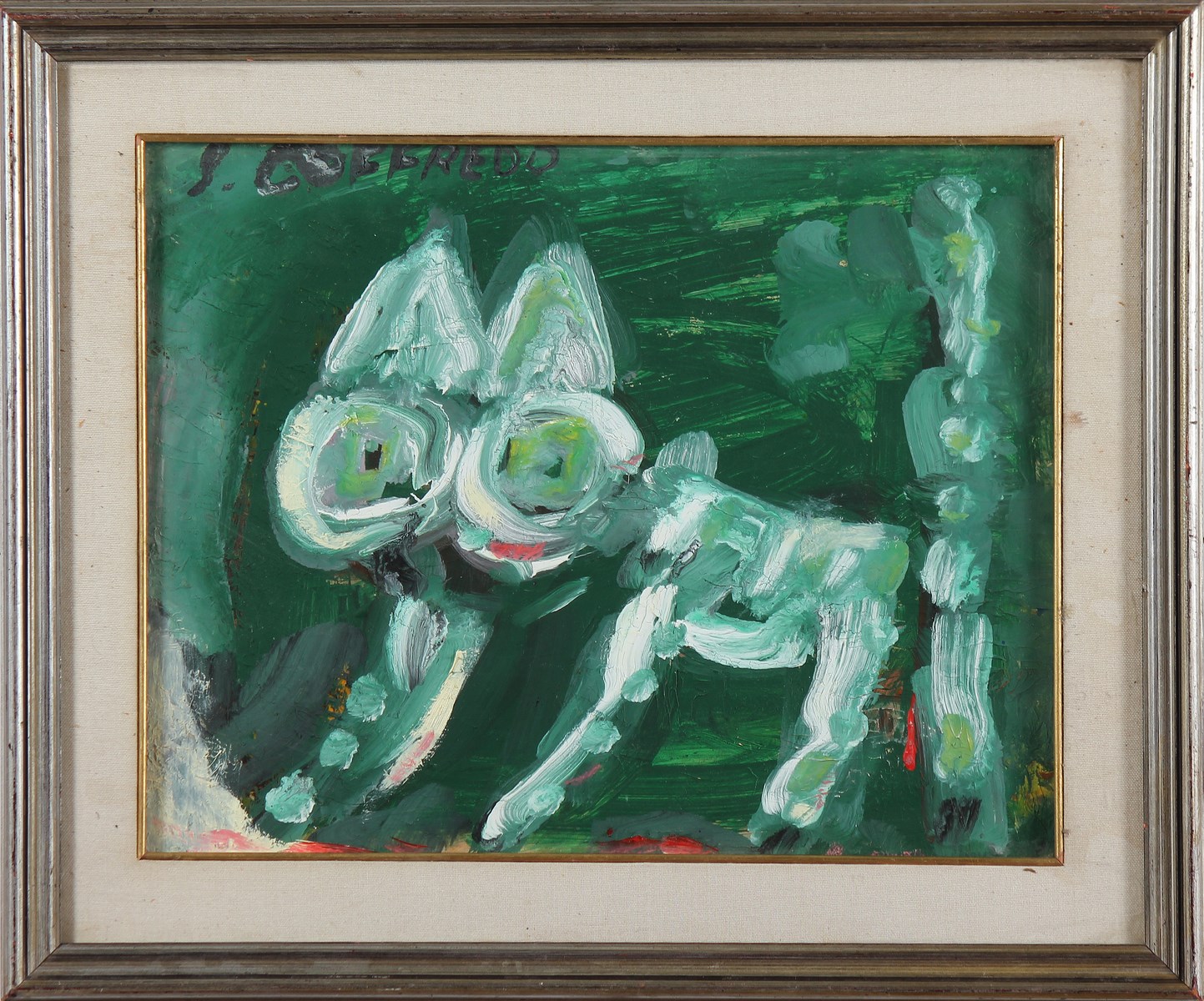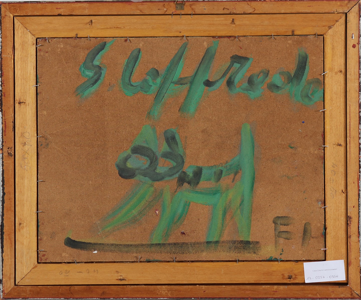 LOFFREDO SILVIO (n. 1921) Gatto. Olio su faesite. Cm 50,00 x 40,00. Firma in alto a sinistra. Al retro firma. Autentica dell'artista su fotografia. Cornice presente