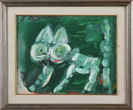 LOFFREDO SILVIO (n. 1921) Gatto. Olio su faesite. Cm 50,00 x 40,00. Firma in...