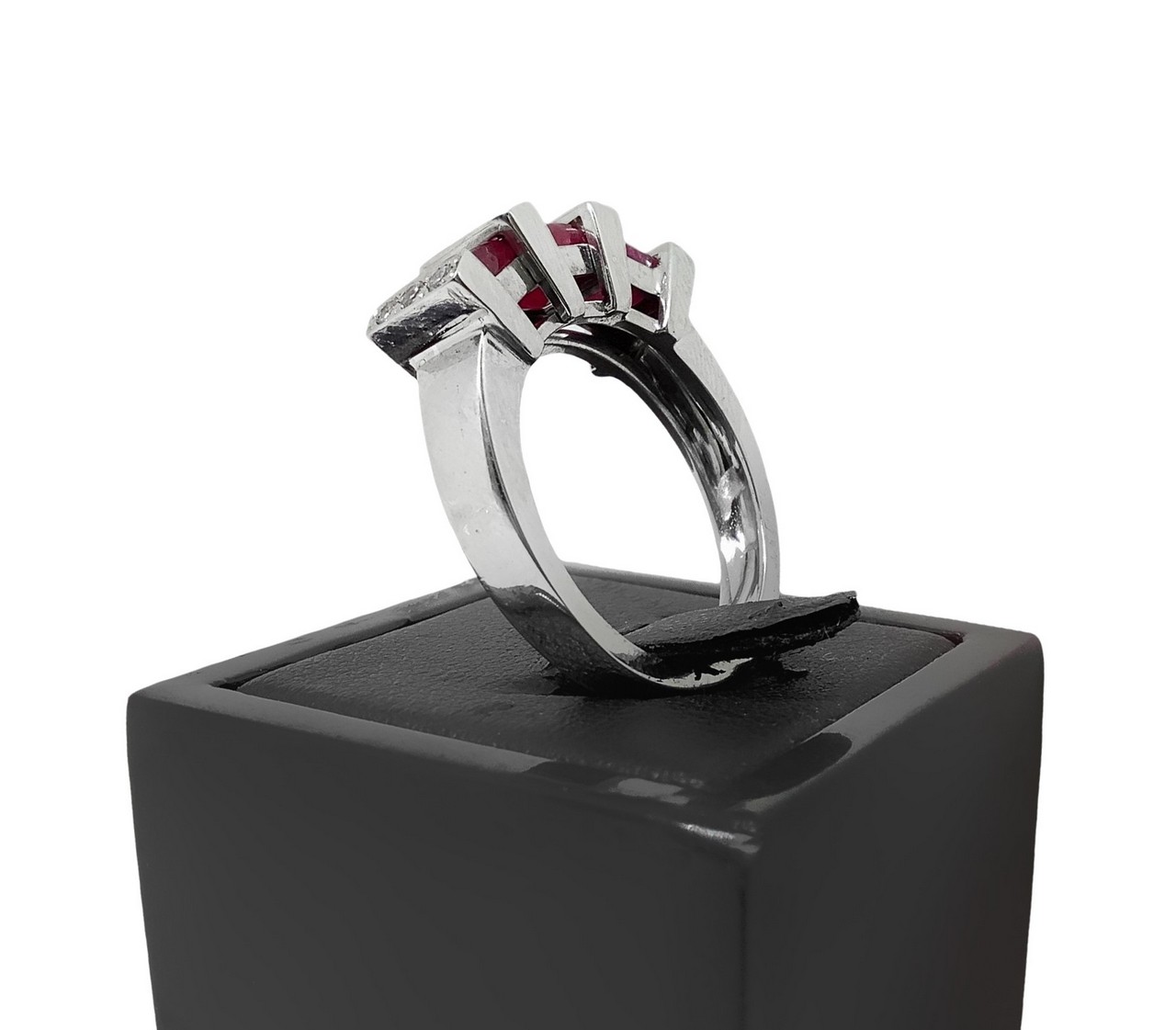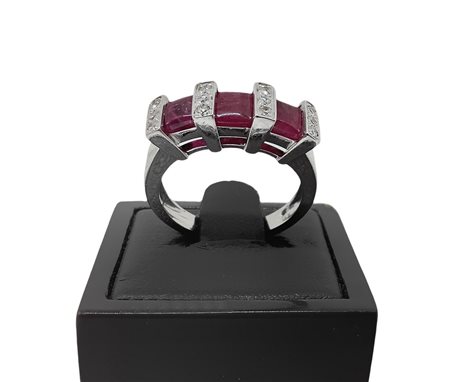 Anello in oro, rubini, diamanti. Misura13 1/2 Ct 0,123 diamanti VS G, rubini 2,10. oro 6,2 gr
