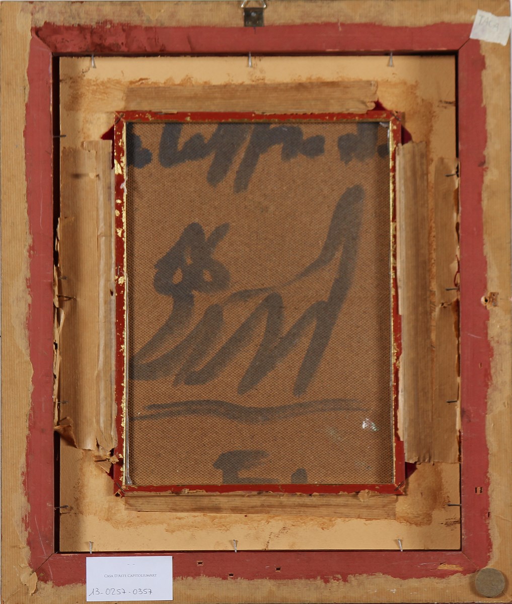LOFFREDO SILVIO (n. 1921) Gatto. Olio su tavola. Cm 25,00 x 35,00. Firma a sinistra. Al retro firma. Autentica dell'artista su fotografia. Cornice presente