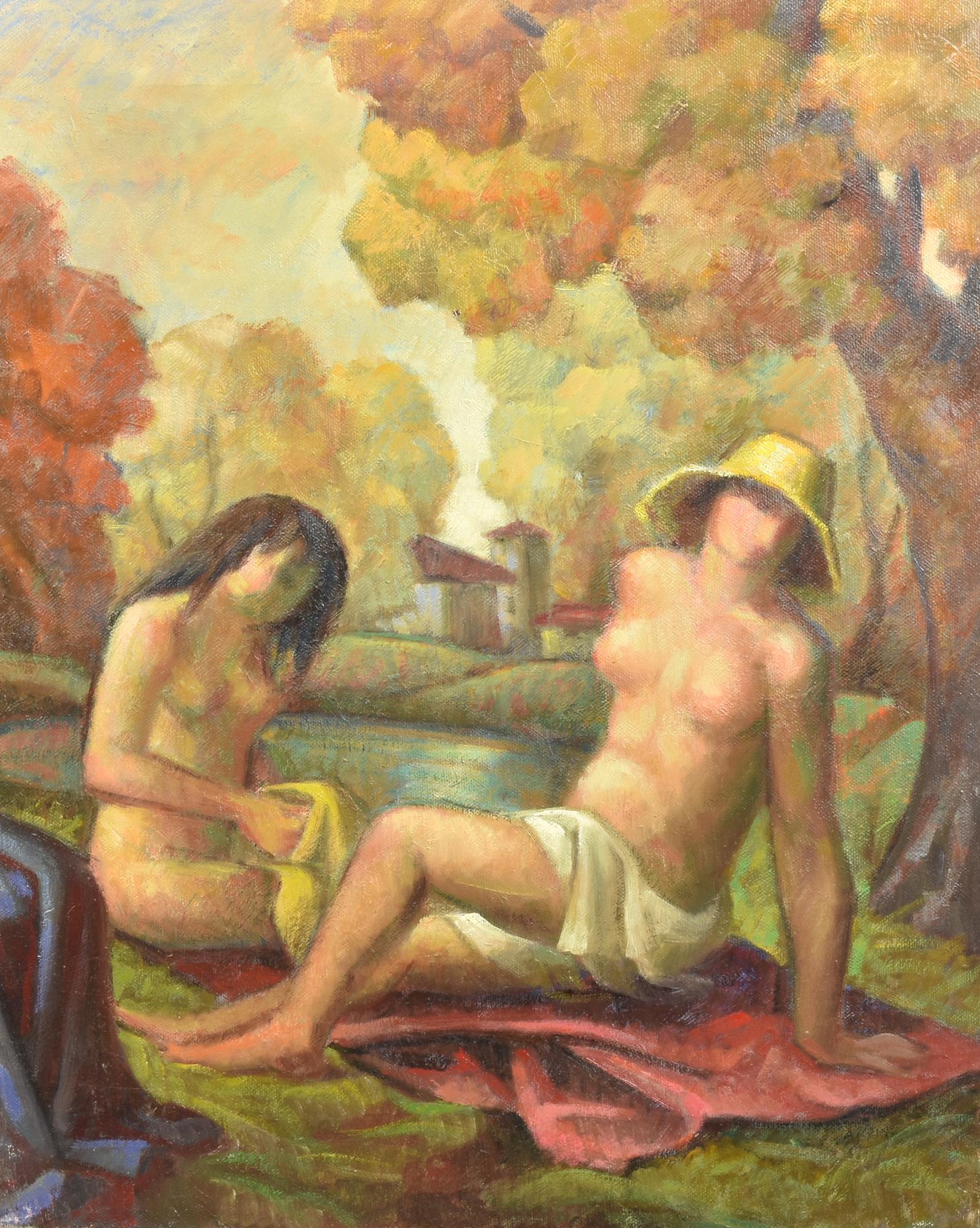 Giovanni Misani LE BAGNANTI olio su tela, cm 50x40