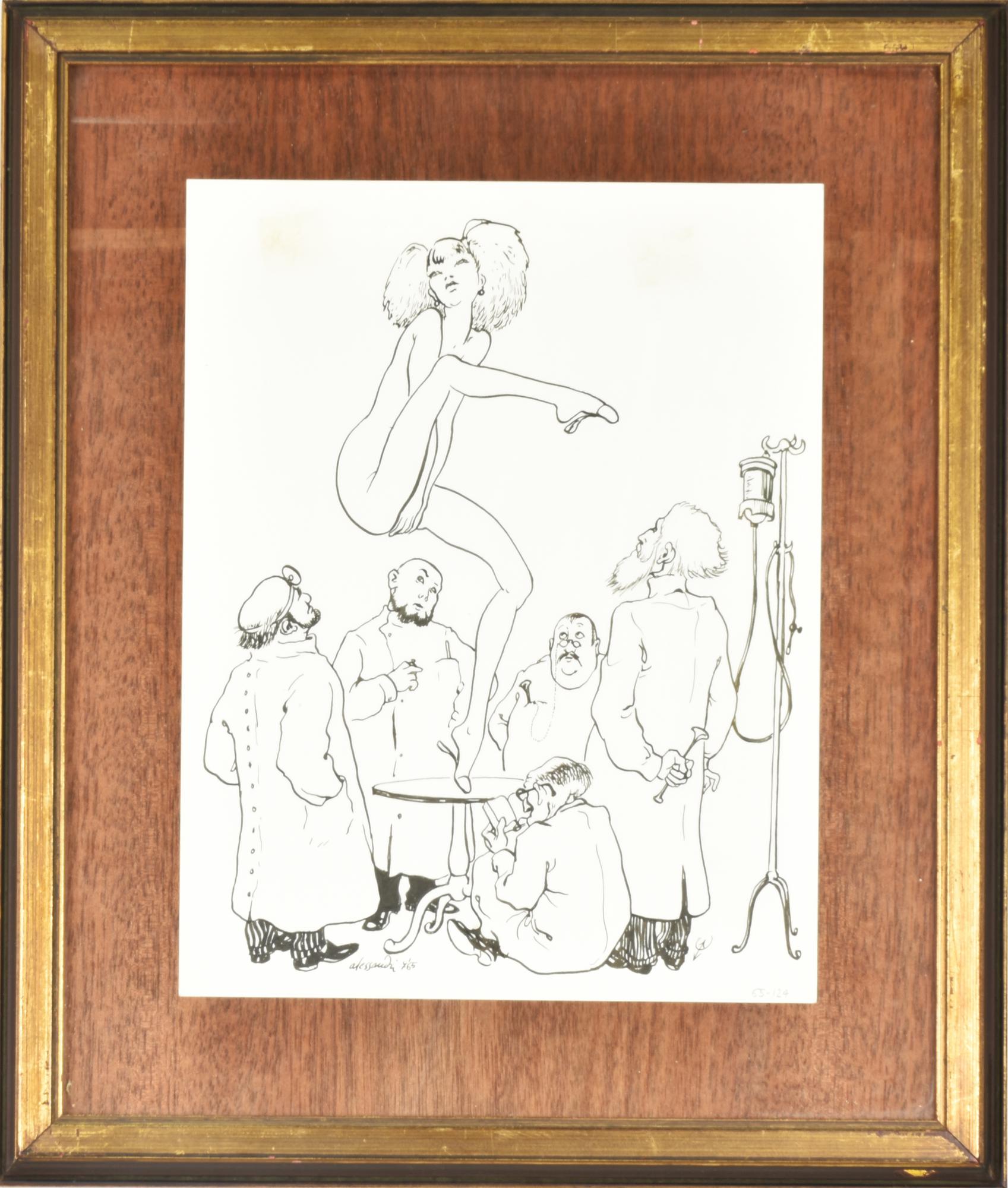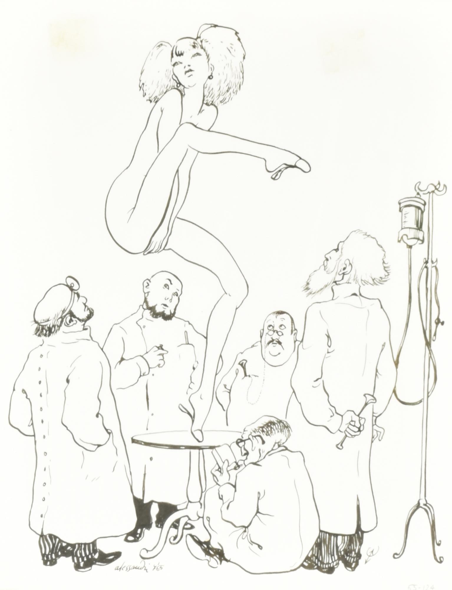 Lorenzo Alessandri I DOTTORI china su carta, cm 27x21 firma Tracce di sporco