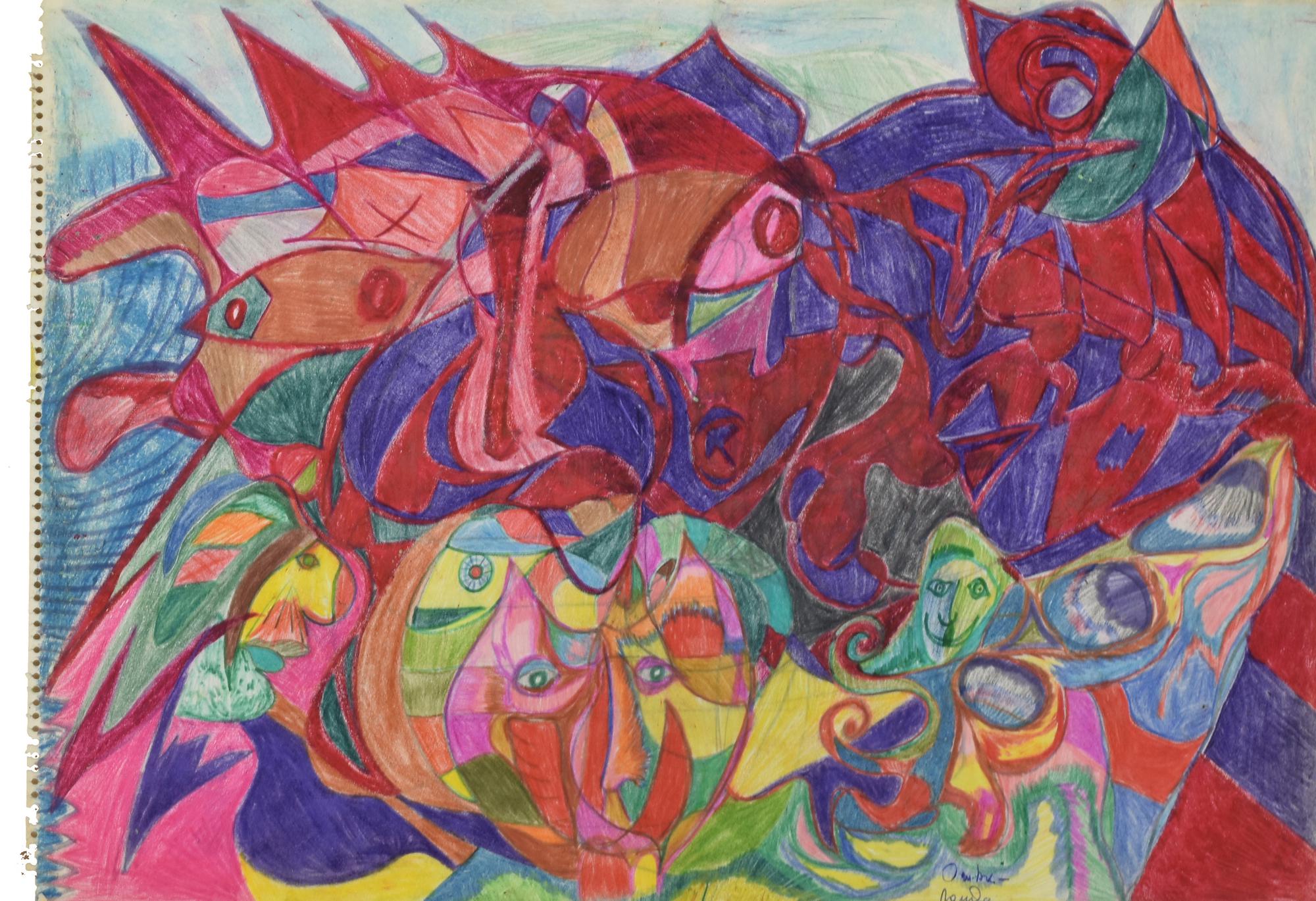 Dando OMBRE tecnica mista su carta, cm 34,7x50,2 firma e titolo