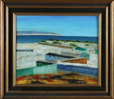 MAGAZZINI SALVATORE (n. 1955) Tirrenia. Olio su tavola. Cm 60,00 x 50,00. Firma in basso a destra. Al retro titolo e firma per autentica. Autentica dell'artista su fotografia. Cornice presente