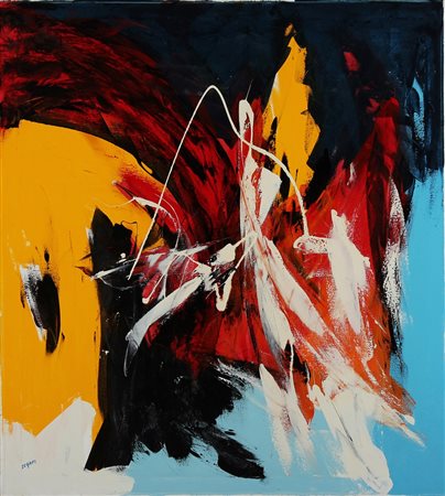 SCARFI ATTILIO (n. 1931) Vento e pioggia. Olio su tela . Cm 90,00 x 100,00. Al retro titolo e firma. Firma in basso a destra. Piccolo taglio nella tela in centro a sinistra.