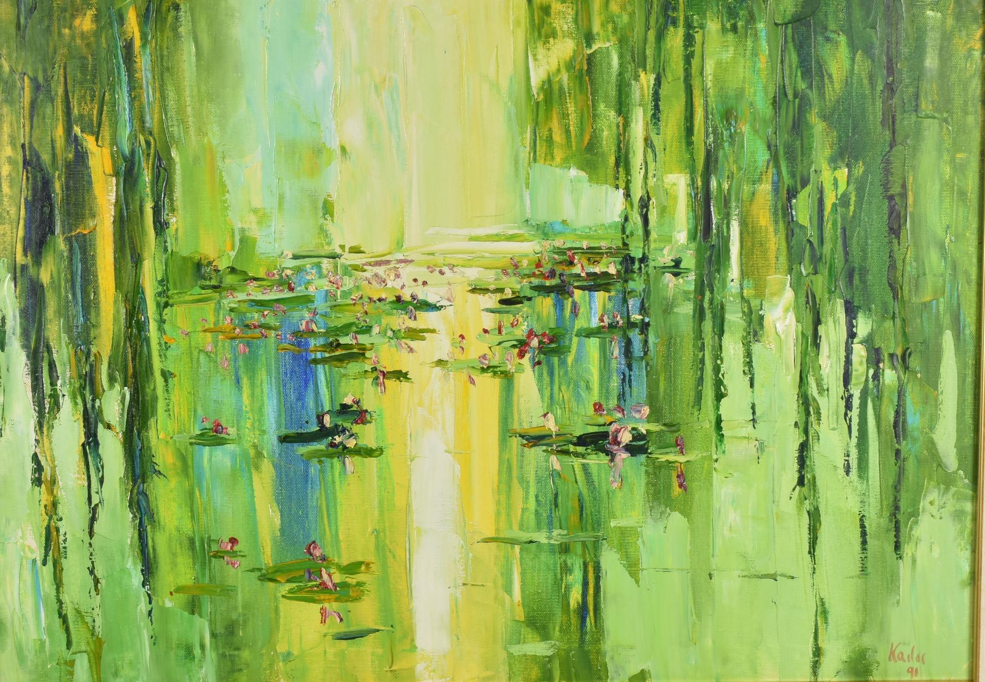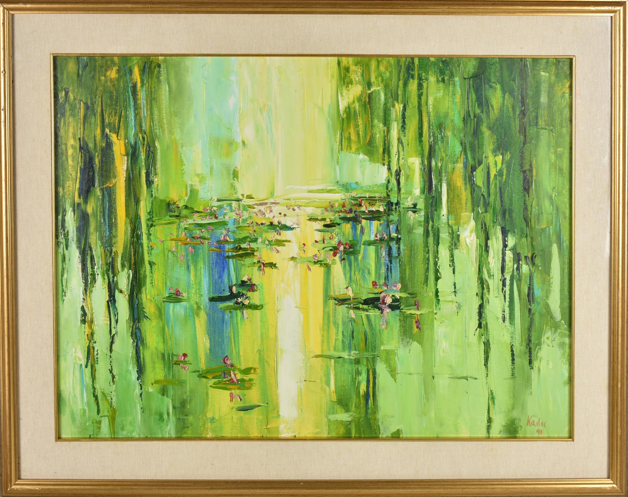 Kadac PAESAGGIO LACUSTRE olio su tela, cm 50x70 firma e data eseguito nel 1991